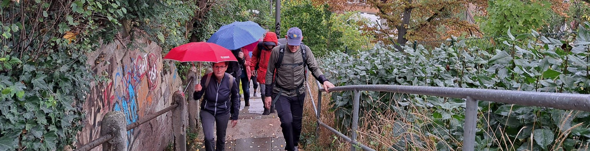 Es geht einiges an Stäffele rauf und wieder runter. Die Wanderung beinhaltet ein paar anstrengende Abschnitte. Die Streckenlänge beträgt 11 km, 270 m hoch, 240 m runter. Es werden ausreichend Trinkpausen eingelegt.