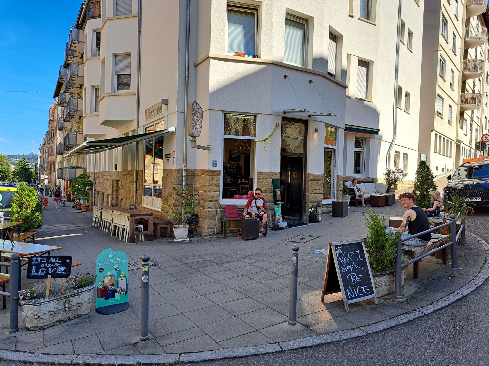 Bei den Stadt- und Stäffeleswanderungen werden immer interessante „Geheimtipps“ zur Schlusseinkehr oder Mittagsrast eingeplant. Dieses Mal das Café Seyffer in der Vogelsangstrasse.